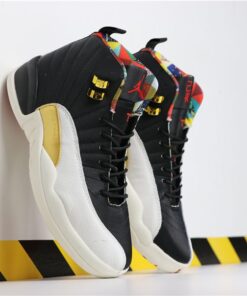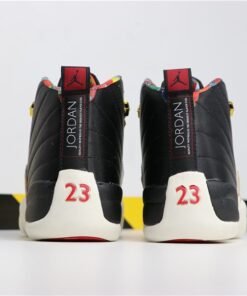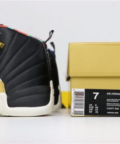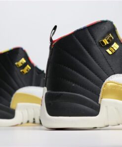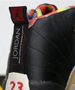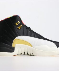 This celebrated iteration of the shoe features a Black satin upper with White textured overlays atop a matching White rubber sole. Metallic Gold detailing and multicolored pattern on the inner lining, which could be a nod to the celebration of CNY, completes the design.