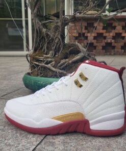 Dressed in a White, University Red, and Metallic Gold color scheme. No leaked photos have surfaced, but this Air Jordan 12 is expected to have an “Cherry” Jordan 12 vibe with Metallic Gold upper eyelets originally seen on the “Taxi” Jordan 12s.