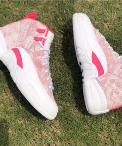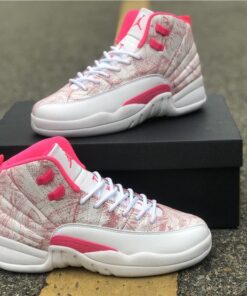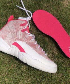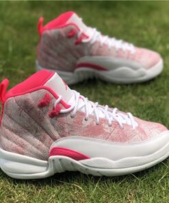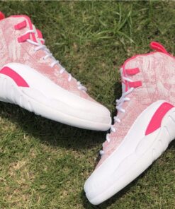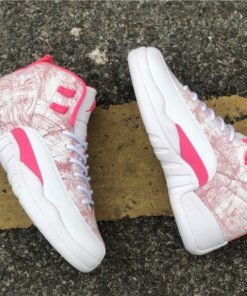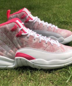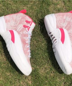 this Air Jordan 12 comes dressed in a White, Arctic Punch, and Hyper Pink color combination. This pair comes highlighted with a mixture of Light Pink and White that gives them a cracked paint look. It almost resembles suede, which has moved in different directions, giving them an artistic look. Next, we have White leather across the tongue and overlay across the sides. We also have a darker shade of Pink that lands on the liner, branding on the tongue, top eyelet, heel pull tab, and a White rubber outsole to finish the look.