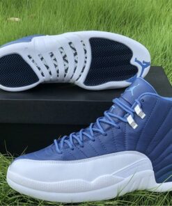 This Air Jordan 12 will come dressed in a Stone Blue, Legend Blue and Obsidian color combination. The upper on this pair will fade over time and will unveil a unique design on the base. In addition they feature Silver on the top two metal eyelets while White leather runs across the mudguard.
