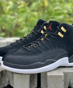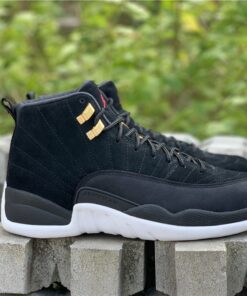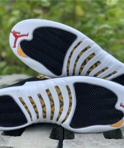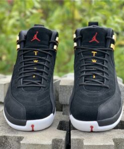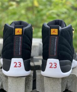 Dressed in familiar Black, Gold, and White color scheme. The shoe features a Black suede upper with Metallic Gold on the eyelets atop a White outsole. A Red Jumpman and Taxi-colored “TWO 3” on the tongue completes the design.