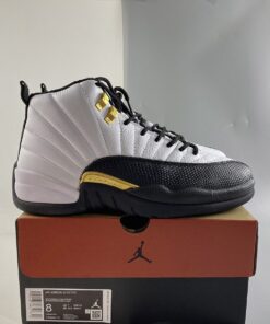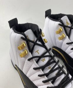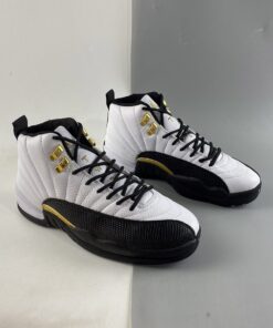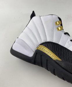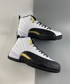 Dressed in a White, Black, and Metallic Gold color scheme. This Air Jordan 12, dubbed “Royalty” – similar to 2017’s Air Jordan 4 release, features a White leather upper, Black toe overlays and rubber sole, and Gold eyelets to look like the original. However, the new additions includes a premium sockliner along with more Gold appearing on the mudguard, tongue branding, and heel tab to complete the design.