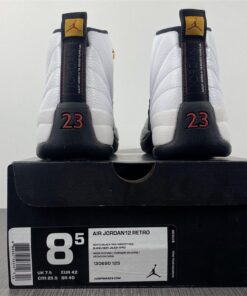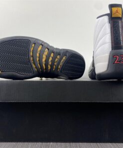 This classic Air Jordan 12 comes dressed in a White, Black, Taxi and Varsity Red color combination. Constructed with White leather across the uppers, Black textured lands on the overlays while the same shade lands on the liner, outsole and back heel. In addition the outsole features a combination of Black and Yellow which gives them the ’Taxi’ nickname. Other highlights includes Red on the Jumpman branding located on the heel and toe while Gold is applied to the eyelets which completes the look.