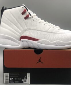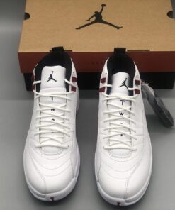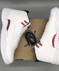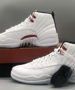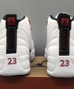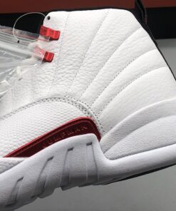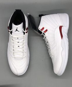 Dressed in a White, University Red, and Black color scheme. This Air Jordan 12 features an all-White leather upper paired with University Red contrasting accents and Black detailing throughout. Metallic Red upper eyelets atop a White and Black rubber sole completes the design.