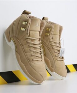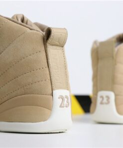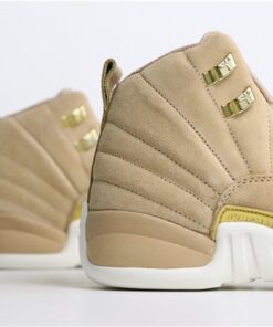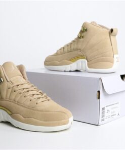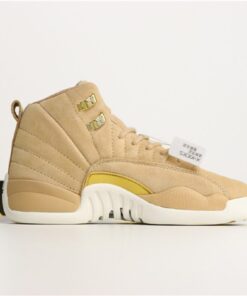 This Air Jordan 12 features a premium suede Vachetta Tan upper with hits of Metallic Gold for a nice luxurious touch. Completing the design is a clean White midsole and rubber outsole.