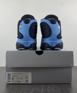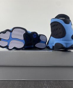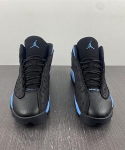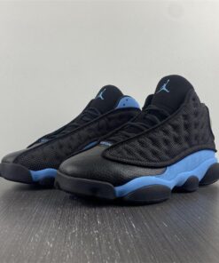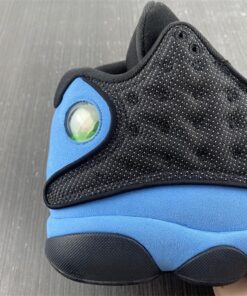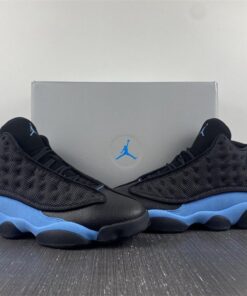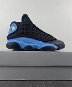 Dressed in a Black, University Blue, and White color scheme. This offering of the Air Jordan 13 features Black used on the 3M reflective mesh panels, leather toe box, tongues, laces, liner, and midsole. University Blue suede overlays, White tongue branding and rubber outsole sole completes the design.