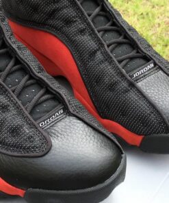 The Air Jordan 13 ‘Bred’ 2017 features Black leather across the toe, suede on the tongue and 3M reflective mesh across the panels. In addition, Red suede will run across the lower part of the shoe which extends across the heel. Other highlights include a Red Jumpman on the tongue and the traditional hologram by the heel.