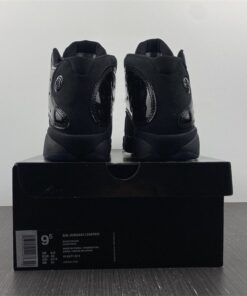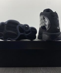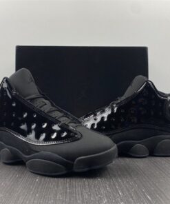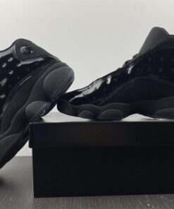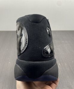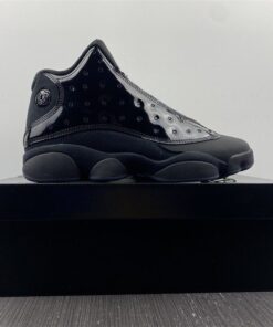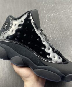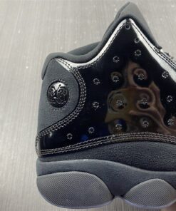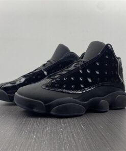 Much like the Air Jordan 11, this Air Jordan 13 will come dressed in an all-Black color scheme. Very similar to the “Black Cat” Air Jordan 13 from 2017, this release replaces the mesh panels for patent leather will the remainder of the shoe receives suede treatment.