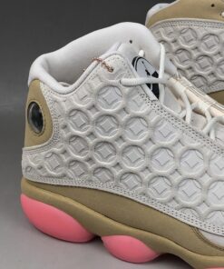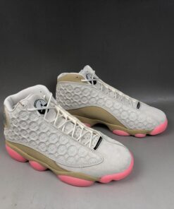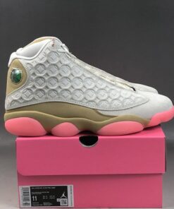 Dressed in a Pale Ivory, Black, Digital Pink, and Club Gold color scheme. This Air Jordan 13 features an Ivory-based upper with special Chinese coin-inspired graphics debossed throughout. Other details includes Gold nubuck overlays atop a matching midsole and Pink rubber outsole.