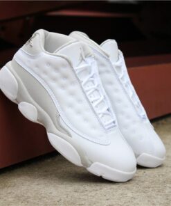 This Air Jordan 13 features a White, Metallic Silver and Pure Platinum color combination. Using White on the panels which is constructed with tumbled leather, the same shade covers the toe in with smooth leather. Following we have Pure Platinum which covers the lower portion of the sides, heel and midsole which is done with suede. Completing the look is Metallic Silver on the Jumpman branding.