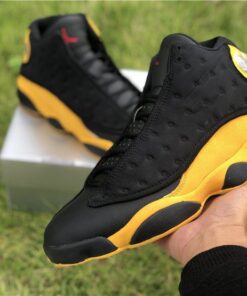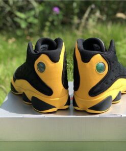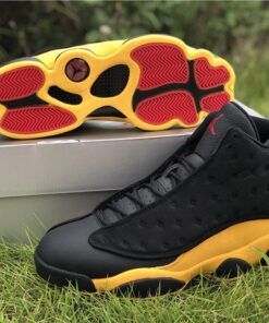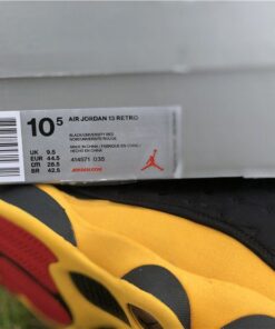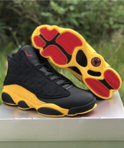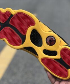 Dressed in a Black, University Red and University Gold color scheme. This Air Jordan 13 is built with a mix of leather, nylon and suede details, it also contains personal Melo touches, including “Class of 2002” on the right insole and the Melo logo on the right insole.