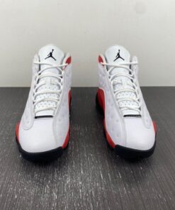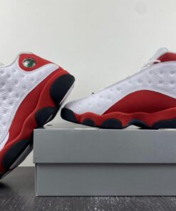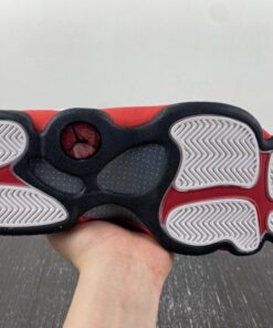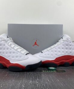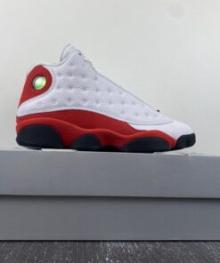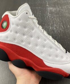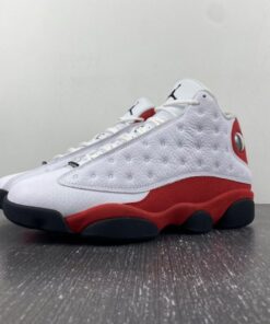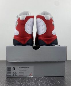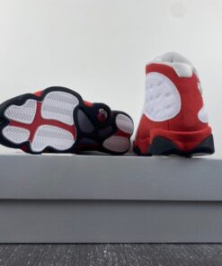 Dressed in the classic Chicago Bulls color scheme. This Air Jordan 13 a White tumbled upper that runs up the tongue, as well as on the unique side panels that the Air Jordan 13 possesses. Red accents surround the ankle hologram as well as finding its way down to the midsole. Finishing off the look are Black details on the outsole, and adds minimal detail on the branded tongue as well.