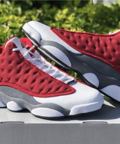 This Air Jordan 13 comes dressed in a Gym Red, Flint Grey, White, and Black color combination. Resembling Kevin Martin’s PE, they feature Red reflective on the base, White leather across the toe box while Flint Grey suede covers the lower part of the panels and heel.