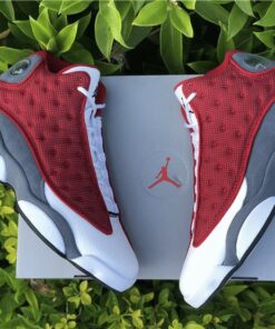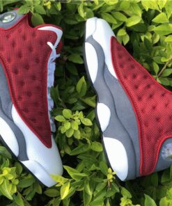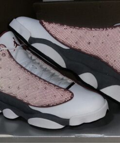This Air Jordan 13 comes dressed in a Gym Red, Flint Grey, White, and Black color combination. Resembling Kevin Martin’s PE, they feature Red reflective on the base, White leather across the toe box while Flint Grey suede covers the lower part of the panels and heel.