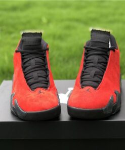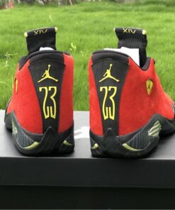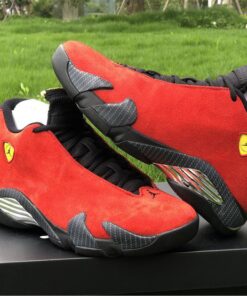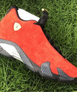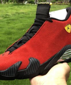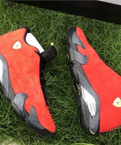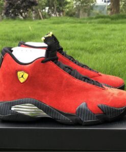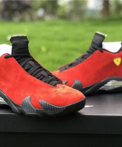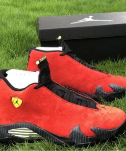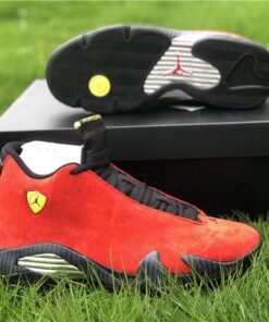 Inspired by Michael Jordan’s love for cars, the Ferrari Air Jordan 14 features challenge red suede on the uppers, sleek lines, carbon fiber graphics on the midsole and vibrant yellow hints.