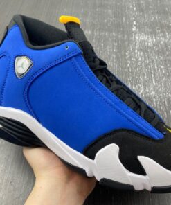 Jordan Brand is effectively recreating history with the upcoming Air Jordan 14 “Laney,” echoing a colorway that originally released back in 1999. And save for its taller, mid-top construction, the pair is near identical to its older, low-top counterpart, featuring the signature colors of Laney High School. “Varsity Royal” is used across much of the nubuck construction, contrasting the blacked-out panels and fixtures that dress the toe, lace unit, and outsole. Touches of yellow, then, round out the homage to MJ’s alma mater, highlighting not only the embroidered Jumpman at the vamp but also several of the adjacent branded fixtures.