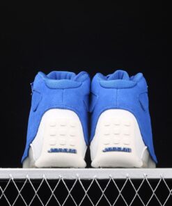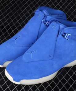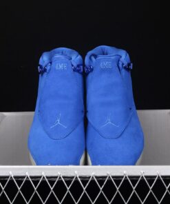 This Air Jordan 18 features a full Blue suede upper with matching Blue tonal branding and exterior. Adding a bit of contrast is White on the heels, midsole and outsole. Finishing off the design is a “4ME” embroidery on the tongue.