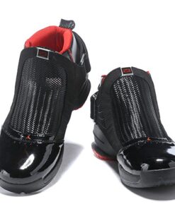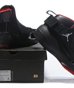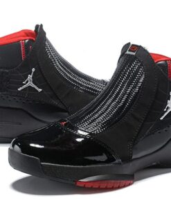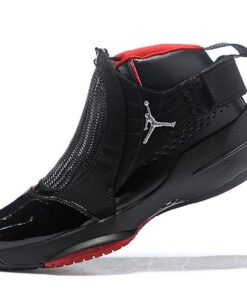 The Air Jordan 19 (XIX) – Black / Chrome – Varsity Red (Countdown Package) were released alongside the Air Jordan 4 (IV) – Black / Cement Grey / Fired Red in 2008. They feature an all black upper with red accents, and are constructed from materials including leather and patent leather. They were inspired by and modeled after the most dangerous snake on earth, the Black Mamba, and truly exemplify the level of greatness that only Michael himself could attain. They feature a phylon midsole with a double stack Air Sole Unit in the heel, combined with a full length zoom air bag, as well as a 3/4 length carbon fibre shank for added support. The outsole features a solid, modified version of the herringbone pattern, which provides great traction on the hardwood, as well as new flex groove details for added flexibility. Other technical specifications include a patent leather toe box, tech-flex upper with Velcro heel strap, plastic lace-locks, Jumpman on heel and midfoot.