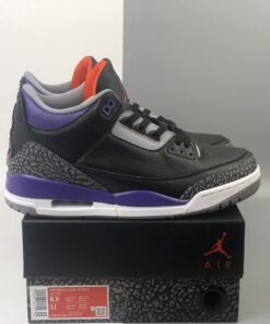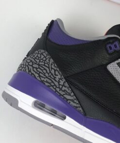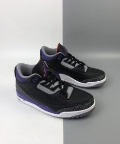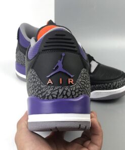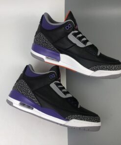Dressed in a Black, Cement Grey, White, and Court Purple color scheme. While everyone was hoping for a “Lakers” theme, this Air Jordan 3 actually comes in a “Suns” makeup. It features a Black leather base with elephant print overlays paired with Purple around the collar and midsole. Other details includes a border around the Jumpman silhouette in Orange atop a White midsole and Grey rubber outsole.