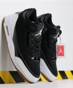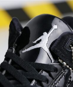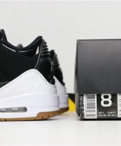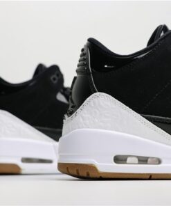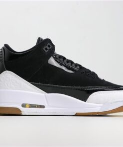 Dressed in a Black and White color scheme. This Air Jordan 3 features a Black upper with patent leather on the tongues and overlays. White detailing appears on the Jumpman branded tongues, overlays on the toe and heel as well as the midsole. A Gum rubber outsole finishes off the design.