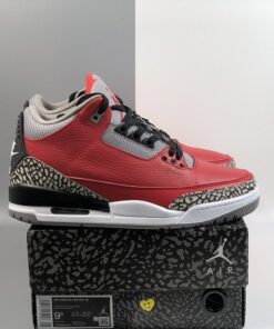 Dressed in a Varsity Red, Cement Grey, and Black color scheme. No leaked photos have surfaced, but this Air Jordan 3 is expected to feature a Red leather upper with special graphic details, elephant print overlays, and Nike Air on the heels.