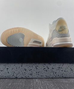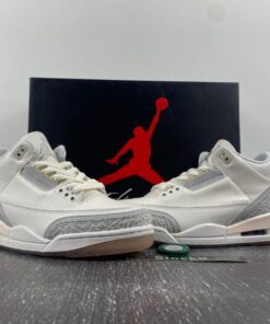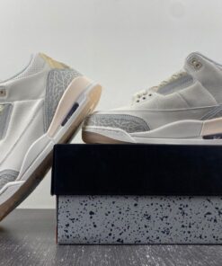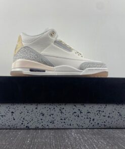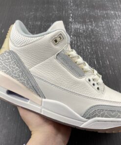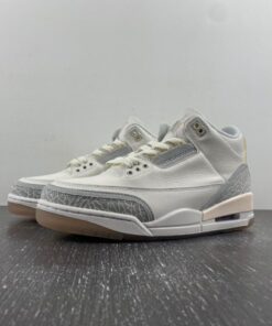 This Air Jordan 3 features an Ivory, Grey Mist, and Cream color combination. Highlighted with Ivory tumbled leather across the upper with the signature perforations on the collar. Next, smooth leather appears on the mudguards, while suede drapes the overlays on the toe and heel. The eyelets have a translucent aged finish. The same treatment is applied to the heel tabs, which display a translucent Jumpman logo and Nike Air branding underneath. Grey elephant print wraps the toe and heels, Ivory adorns the midsole, and a translucent outsole finishes the look.