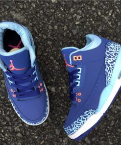 Dressed in a Dark Purple Dust, Atomic Pink and Blue Cap color scheme. This Air Jordan 3 features a Dark Purple Dust upper with Blue Cap detailing throughout, along with Atomic Pink accents. A White midsole and Purple Dust rubber outsole completes the look.