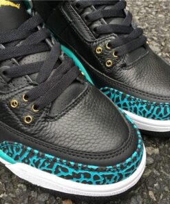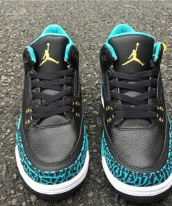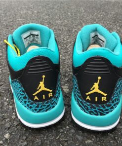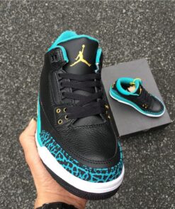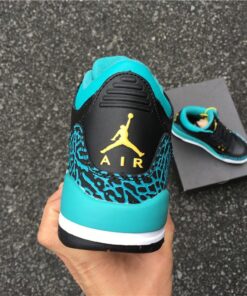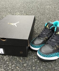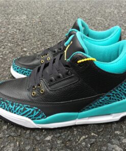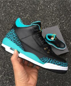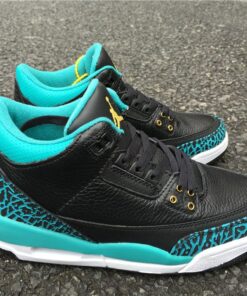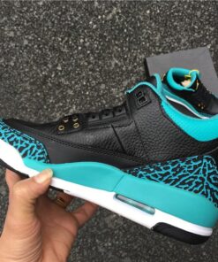 Dressed in a Black, Metallic Gold, Rio Teal and White color scheme. This Air Jordan 3 features a Black upper with Rio Teal accents, Metallic Gold Jumpman logos and lower eyelets. Completing the look is a White midsole and Black rubber outsole.