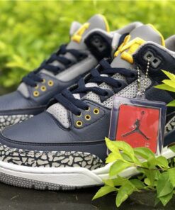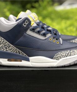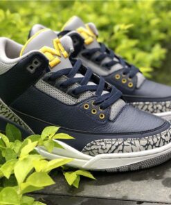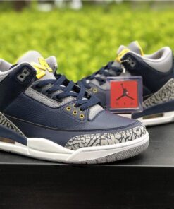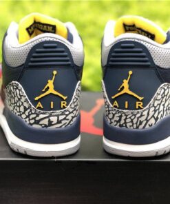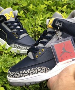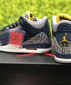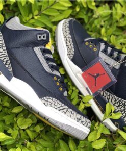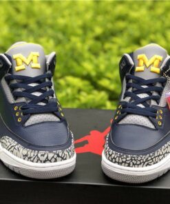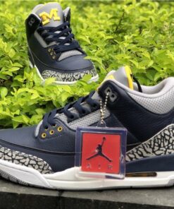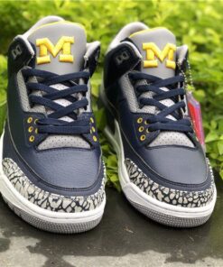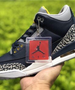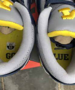 We’ve seen them before, but one of the pairs that players will be rocking is their exclusive Air Jordan 3 Michigan PE. This Air Jordan 3 features a Navy tumbled and smooth leather upper paired with Cement Grey detailing and Yellow Maize accents. Giving the shoe its official player exclusive look is Michigan’s “M” block logo on the tongues.