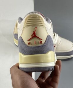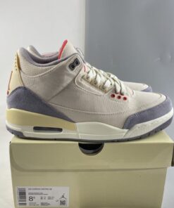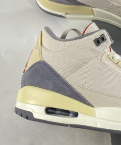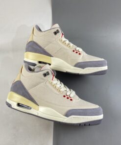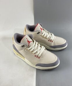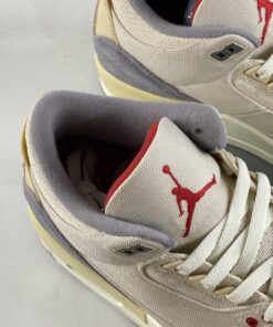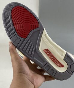 This Air Jordan 3 comes dressed in a Muslin, University Red, Cement Grey, and Sail color combination. The image used is a mock-up. However, it’s an accurate representation of what’s releasing.