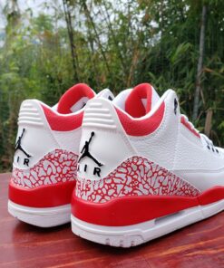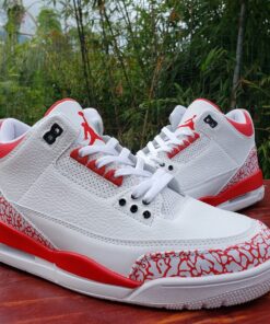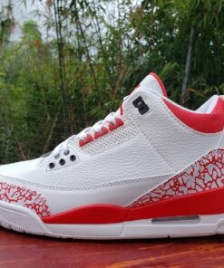 This special edition of Michael Jordan’s third signature sneaker is largely inspired by Tokyo’s heritage and culture. The white leather upper is contrasted by the red found on Japan’s flag, which covers the sock liner, the lace eyelets, and the midsole. Additionally, the red is placed over the elephant print. Hits of black will likely be present on the heel Jumpman logo. Capping off the design, the sneaker is placed atop a crisp white midsole and outsole.