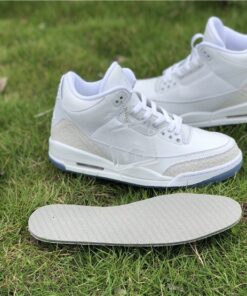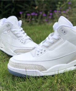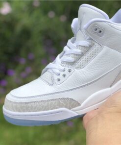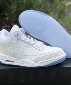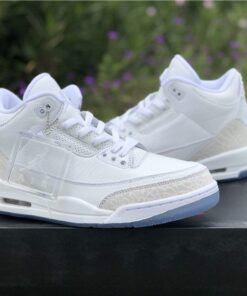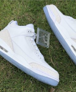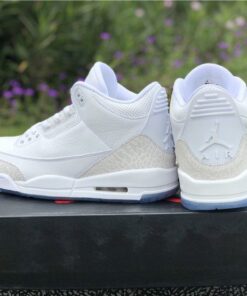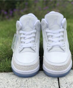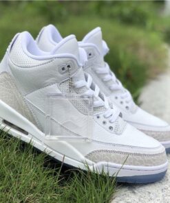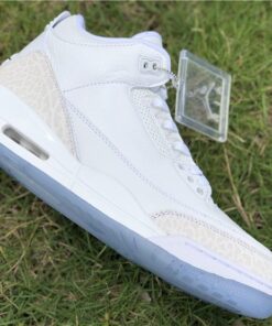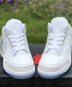 Dressed in a Triple White color scheme. This Air Jordan 3 features a White tumbled and smooth leather upper paired with matching White elephant print overlays. There are no Silver detailing in the description, so don’t expect these to be a “Pure Money” Retro release. Finishing off the design is a clear translucent outsole and matching hangtag.