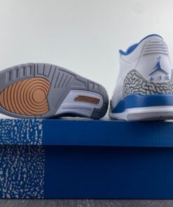 This Air Jordan 3 comes dressed in a White, Metallic Copper, True Blue, and Cement Grey color combination. Although images have yet to leak, the pair will resemble MJ’s player exclusive. The color blocking features the ‘True Blue’ theme. However, Copper adorns the Jumpman and other accents, replacing Red. Lastly, a Jumpman logo will be used on the heel.
