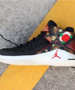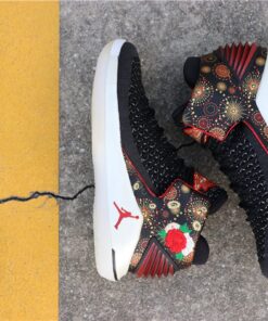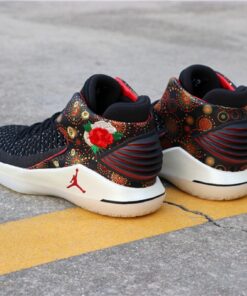 Dressed in a similar design as the Air Jordan 6. This Air Jordan 32 features a Black-based upper paired with Gold, White, Red, and Green contrasting detailing. Adding to the CNY theme are the China-inspired fireworks and floral embroidery. Additional details includes Chinese lettering and “2018” labels on the inner tongues.