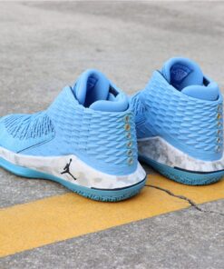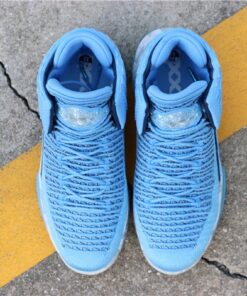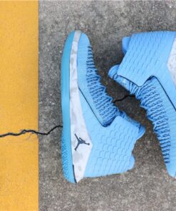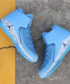 Dressed in the Tar Heels’ University Blue color scheme. This Air Jordan 32 features a Kurim overlay with a call out to each of UNC’s National Championship years on the heel. Completing the design are marbled midsoles.