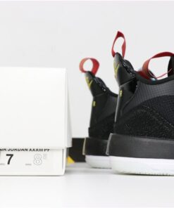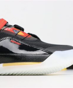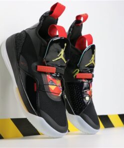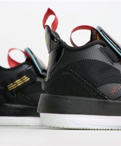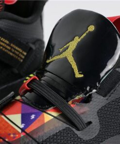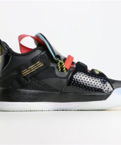 This Air Jordan XXXIII features a Black-based upper crafted in textile mesh, synthetics and leather. Highlighting the shoe is a multicolored patterned design on the tongue overlay and insole as a nod to the traditional Chinese patchwork called Bai Jia Yi. Metallic Gold finishes atop an icy translucent outsole completes the design.