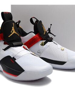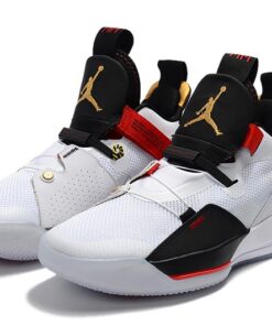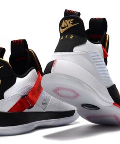 Jordan Brand has officially unveiled the Air Jordan 33, Dressed in a White, Metallic Gold, Black, and Vast Grey color scheme. This Air Jordan 33 feature a White-based upper with Gold accents on the tongues and Nike Air heels. Both Black and Red detailing throughout atop an icy translucent outsole completes the design. Jordan’s most revolutionary shoe. The Air Jordan XXXIII rewrites the story of the greatest basketball shoe on the planet. Its revolutionary FastFit closure system locks you in for flight, while its new Flightspeed technology is tuned for propulsion.