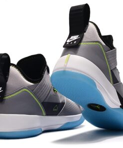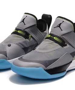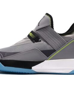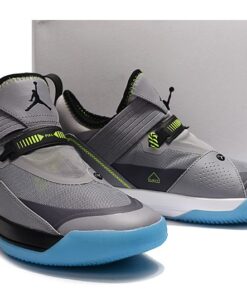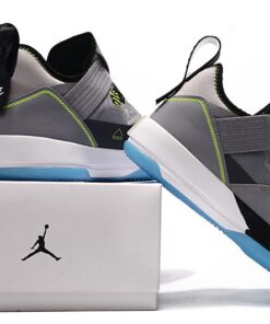 Dressed in a Cement Grey, Black, Sail, and Volt color scheme. This offering features a full Cement Grey upper with Volt contrasting stitching atop a white midsole and Blue translucent outsole.