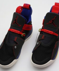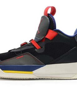Dressed in a Black, Dark Smoke Grey, and Sail color scheme. This Air Jordan XXXIII comes with hints of Black and Red throughout its upper. It’s constructed with FastFit which removes laces and introduces an all-new system for containment on the court, an innovation designed to provide ultimate lockdown. Nike Air heel tabs atop the a new Jordan Apex-Utility Nike React cushioning completes the design.