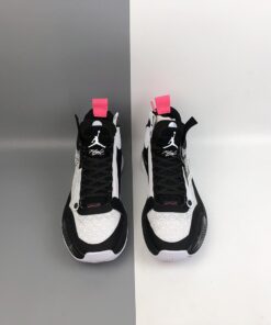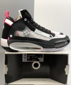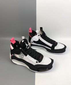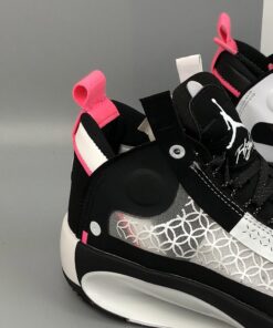 This offering of the Air Jordan XXXIV comes dressed in a Black, Metallic Silver, White, and Digital Pink color scheme. It features a new translucent synthetic upper decorated with a tiled pattern similar to what appears on the “Chinese New Year” Air Jordan 13.