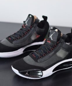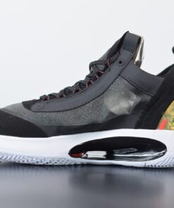 Dressed in a Black, Metallic Silver, White, and Red Orbit color scheme. This low-top Air Jordan 34 sports a Black breathable upper with suede toes atop a White midsole and rubber herringbone outsole. Highlighting the shoe are Red Orbit contrasting accents throughout.