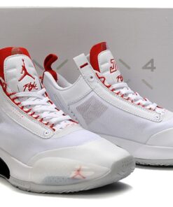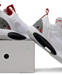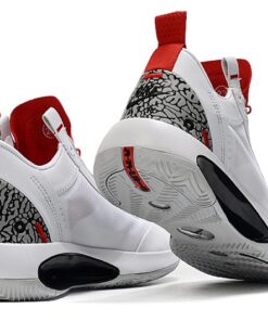 This offering of the Air Jordan 34 Low features a White base constructed in a mix of translucent mesh and leather paired with Red contrasting accents. Highlighting the shoe is the famous elephant print on the heels showcasing “Nike Air” branding completed with a White midsole and Grey rubber outsole.