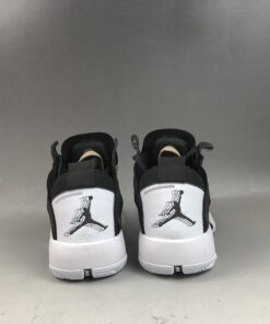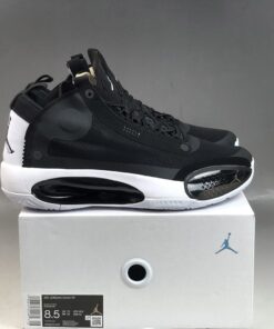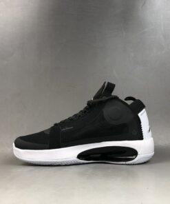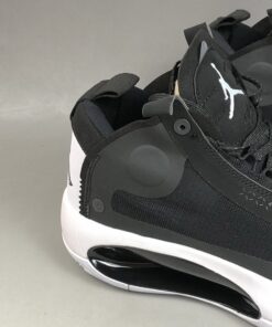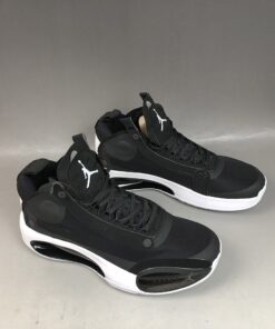 Dressed in a classic Black and White color scheme. This offering of the Air Jordan XXXIV features a Black upper with White appearing on the tongue, heel, and sole. Its new Eclipse Plate sits in the midsole and acts as a bridge between the forefoot and heel Zoom units.