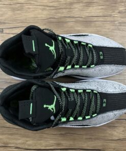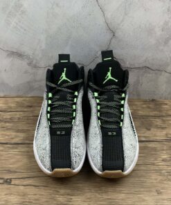 Instead, both the medial and lateral profiles are overlaid with a crackled leather that takes a neutral base and paints atop with grey paint; shading adjacent leans towards a complementing black, one that dyes both the woven cages along the side and the grid-accented mesh that dresses the center line. Barely Volt then details in seldom, calling attention to the oversized Jumpman at the tongue, the “23” text at the vamp, and the many decals that embellish the lace unit, subtle under layer, and insole.