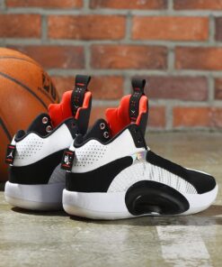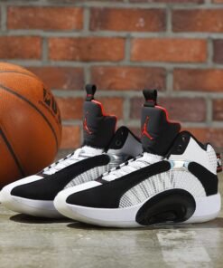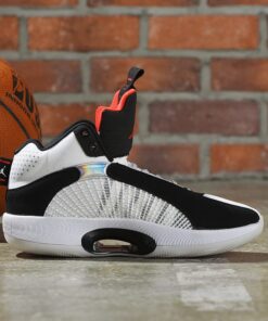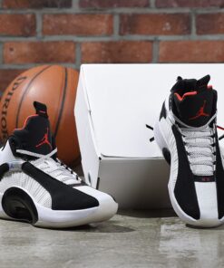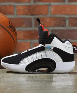 This offering of the Air Jordan XXXV comes dressed in a Chicago-themed White, Black and Red color blocking. It also includes iridescent accents, netting side panels, “Fire Red” Air Jordan 5-inspired tongues atop a White rubber sole completes the design.