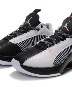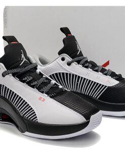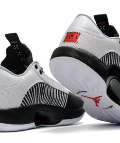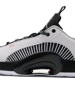 This low-top Air Jordan 35 feature a Black mesh base with White smooth and perforated leather overlays. Other notable details includes speckled laces, Silver Jumpman tongue logo with minor hints of Red accents throughout. A Black plastic Eclipse plate atop a White rubber sole completes the design.