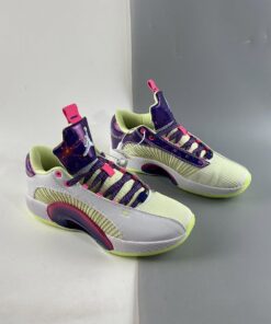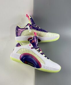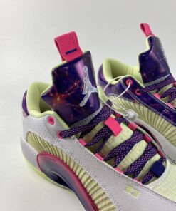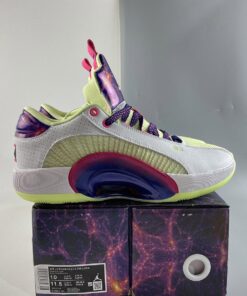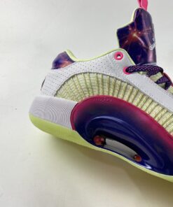 Inspired by Luka’s universe-bending game, “Cosmic Deception” celebrates his combination of unmatched skill and ethereal basketball IQ. This offering of the low-top Air Jordan 35 features a White base highlighted with graphic details on the tongues, medial side, heels, and insoles. Luka’s logo appears on the left tongue and both insoles with “Nike Air” tags on the heels.