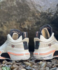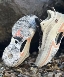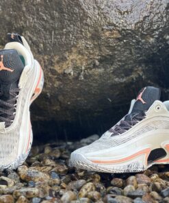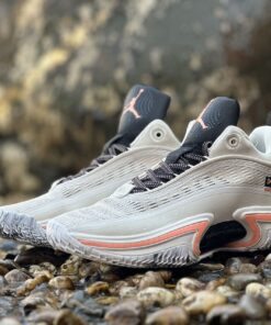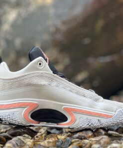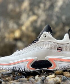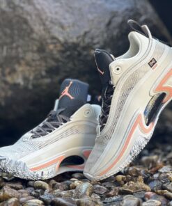 The color scheme is a muted release that sees the low-top pair of Air Jordan 36 dressed in a light orewood brown, with anecdotes of crimson and black to highlight the black tongue and speckled shoelace. The upper features a minimal yet durable jacquard leno-weave that is reinforced by a TPU ribbon. The shoe also comes with a full-length Zoom Air Strobel unit stacked on top of a Zoom Air unit underneath the forefoot for extra responsiveness and comfort. The midsole is outlined by a peach crimson color to match the Jumpman logo on the tongue while a marbled outsole rounds out the shoe.