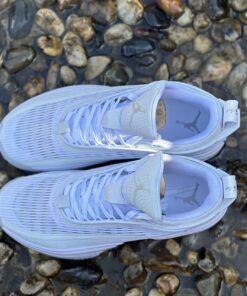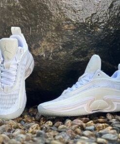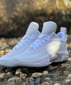 The white/silver “Pure Money” has since become a common scene with Air Jordans as it now arrives on the latest version of the brand’s game shoe – the Air Jordan 36 Low. Featuring an all-white upper, this upcoming release sees subtle hits of silver on the exterior trim with an iridescent finish arriving on the sport stripe on the midsole as well as the enlarged Jumpman logo on the tongue. A full “iced out” rubber outsole completes the Pure Money aesthetic.