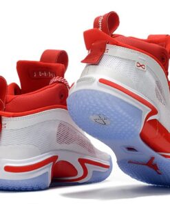 this Air Jordan 36 for Kia comes dressed in White and Red for Canada. Next, we have Kia Nurse’s logo on the left tongue and a Jumpman on the right. This time around, Jordan Brand didn’t use a speckled midsole, but it still comes with a translucent outsole.